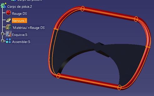 Le volant est conçu en volumique par une nervure de profil circulaire suivant une courbe fermée.