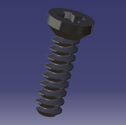 Nous avons placé des vis d'assemblage de normes : vis M3x6x1 à tête bombée à embase lisse ; vis M3x9x1 à tête fraisée. Au lieu de faire un filetage cosmétique, nous avons créé une hélice, puis une nervure de profil métrique normalisé suivant l'hélice pour enlever de la matière et créer un filetage plus "réaliste". Tout est paramétré et normalisé d'après le Guide du dessinateur industriel.